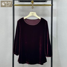 杭州真丝绒钉钻上衣女新款秋季宽松小衫高端大牌妈妈直筒裤两件套
