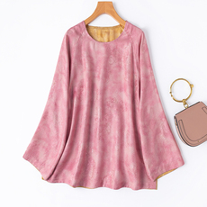 一丝牵 侧边盘扣真丝花萝上衣女100%桑蚕丝提花宽松长袖T恤秋2025