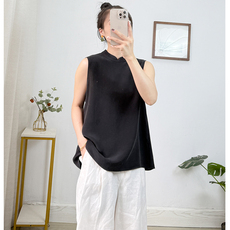 醋酸真丝半高领花边砍袖背心女打底宽松内搭无袖夏季木耳边上衣
