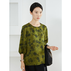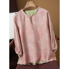 双面穿 全罗真丝绞萝圆领上衣女桑蚕丝国风七分袖衬衣宽松夏