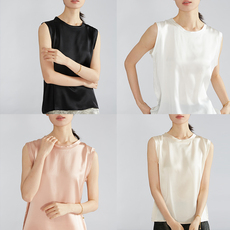 04双绉大码透气桑蚕丝女百搭宽松无袖上衣 真丝纯色打底外穿背心