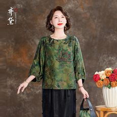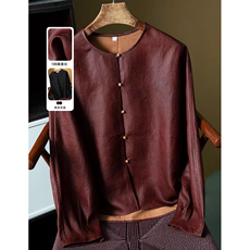 新中式香云纱上衣女新款2025宽松大码圆领妈妈装桑蚕丝真丝小衫