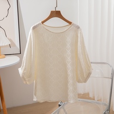 香港 春季t恤女桑蚕丝七分袖2021新款宽松真丝大码韩版针织衫上衣