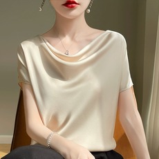 真丝上衣女短袖上衣春夏时尚宽松醋酸缎面妈妈小衫高端桑蚕丝T恤