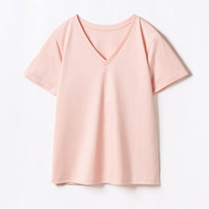 思诺芙德V领短袖女T恤半袖真丝纯色莫代尔多巴胺打底25夏新款上衣