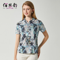 真丝t恤女夏季新款翻领印花半袖显瘦洋气中年妈妈桑蚕丝短袖上衣