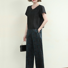 香云纱真丝短袖上衣女夏季妈妈宽松大码显瘦印花绸缎桑蚕丝T恤衫
