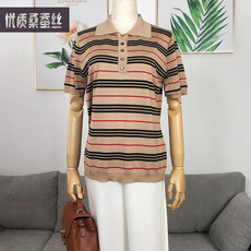 清库存夏季女装上衣宽松大码条纹真丝针织T恤衫POLO领短袖