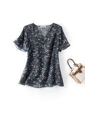 重磅真丝t恤女2025夏新款大码短袖田园风素雅印花杭州桑蚕丝上衣