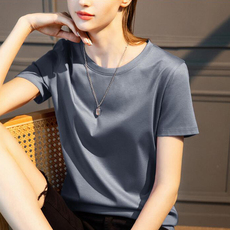 真丝缎面醋酸2024春夏季新款女装五分袖圆领宽松T恤短款短袖上衣
