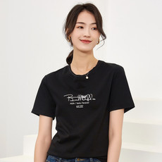 春竹夏季新款60支液氨纯棉圆领短袖冰爽凉感透气亲肤休闲女T恤
