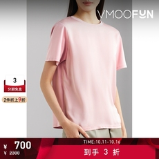 【折扣】THEORY 春夏女简约古典玫瑰色真丝短袖T恤