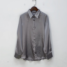 OL风真丝弹力素绉缎面 桑蚕丝简约轻奢长袖方领衬衫女通勤春秋