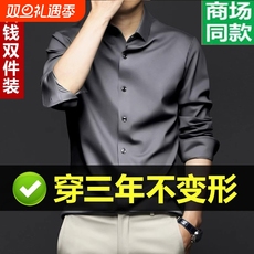 啄木鸟桑蚕丝衬衫男长袖免烫商务休闲真丝高端西装高级感内搭秋季