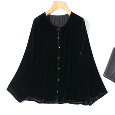 【100桑蚕丝丝绒】莨西子新中式国风真丝立领长袖衬衫女秋冬上衣