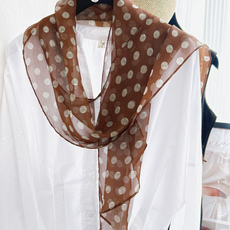 赫本波点真丝棕长巾复古咖色圆点斜角丝巾100%桑蚕丝飘带黑白围巾