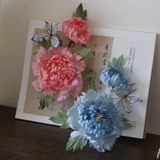 原创 凝露 牡丹真丝烫花发饰古风发饰发夹汉服神仙服配饰