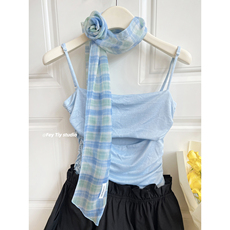 feytiy 含真丝 飘逸垂感原创格子可拆玫瑰花丝巾女春夏新款薄围巾