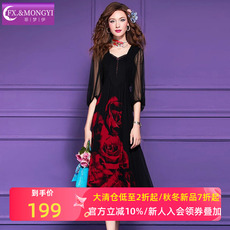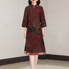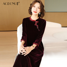 2023秋季气质裙子新款真丝桑蚕丝妈妈时尚丝绒连衣裙女显瘦中国风