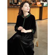 真丝绒连衣裙秋季2025新款气质高端大牌妈妈桑蚕丝复古裙子中国风