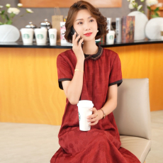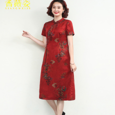 红色妈妈真丝香云纱连衣裙气质显瘦杭州大牌桑蚕丝裙子夏新款2023