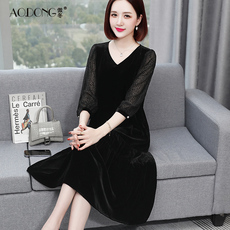 2023年丝绒连衣裙女显瘦气质裙子秋季中年妈妈新款真丝桑蚕丝时尚