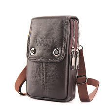 新款男斜挂包真皮手机包多功能穿皮带竖款手机套中老年牛皮小挂包