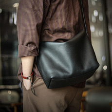 复古真皮男士包包单肩斜挎包休闲小背包植鞣牛皮手工擦色枕头包包
