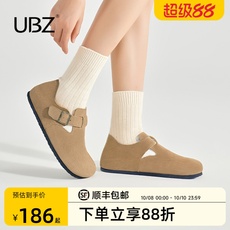 UBZ 防水勃肯单鞋女2025春秋季新款厚底真皮豆豆鞋男士全包博肯鞋