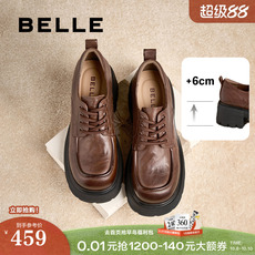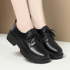 真皮单鞋女英伦风乐福鞋新款春季小皮鞋系带黑色厚底女士单鞋大码