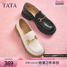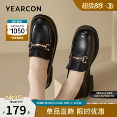 【林夏薇同款】千百度白色乐福鞋女春秋小皮鞋豆豆鞋通勤真皮单鞋