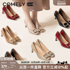 真皮~骄屿法式玛丽珍高跟鞋春秋水钻方头漆皮气质粗跟单鞋不累脚