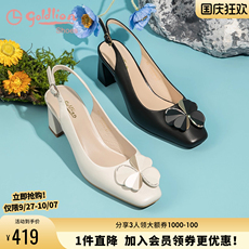 马内尔女鞋夏季新款蝴蝶结一脚蹬冲孔透气中跟防滑真皮单鞋G23282