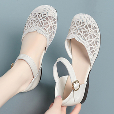 包头凉鞋女夏季2025年新款镂空皮鞋网纱网面单鞋低跟时尚真皮女鞋