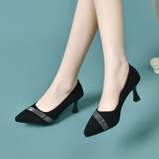 断码清仓女兆2025年新款夏季蝴蝶结水钻尖头高跟上班通勤浅口单鞋