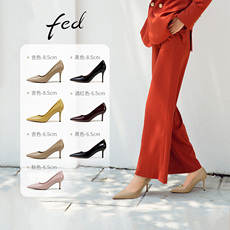 fed粉色高跟鞋夏季新款女鞋6.5cm真皮鞋尖头单鞋女款S0421-YAD608