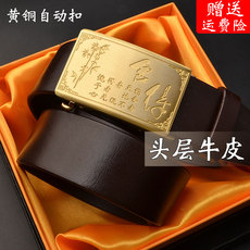 实心纯铜男士皮带自动扣真皮头层牛皮无夹层中青年休闲百搭裤腰带