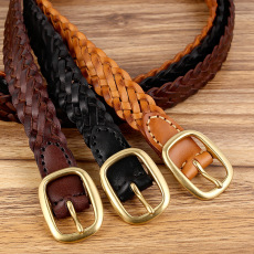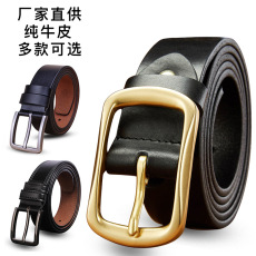 正品头层牛皮男士腰带皮带纯皮裤带真皮黄铜扣挂扣打眼孔针扣潮流