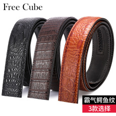 正宗鳄鱼纹真皮腰带男中年无扣头单皮纯牛皮裤带自动扣皮带条黑色