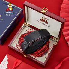 暇步士男皮带休闲纯牛皮自动扣腰带休闲真皮裤带木质礼盒商务休闲