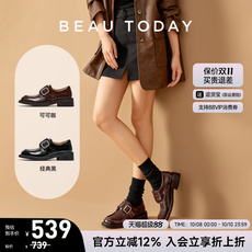 BeauToday方头厚底乐福鞋女款秋冬真皮英伦风小皮鞋女棕色女鞋子