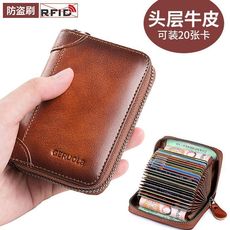 防消磁卡包大容量多卡位男士超薄高档女钱包一体真皮银行卡片收纳