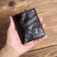 原创手工钱包短款男士真皮头层牛皮疯马皮简约复古超薄款小款钱夹