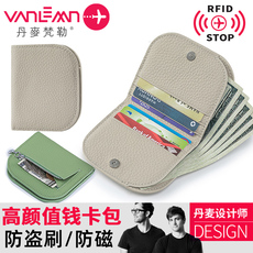 丹麦梵勒防盗刷零钱包男女士RFID卡包超薄款真皮超薄小巧美金钱夹