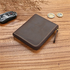 男士植鞣头层牛皮短款钱包真皮钱夹休闲超薄简约皮夹拉链零钱包潮