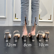 高跟鞋婚鞋尖头粗跟走秀防水台鞋伴娘结婚鞋一字性感水钻凉鞋13CM