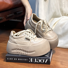 欧货真皮做旧大头面包鞋女厚底松糕小白鞋百搭小个子增高休闲板鞋