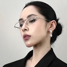 清冷高智感银丝半框眼镜女近视可配度数椭圆小框超轻钛架金丝眼睛