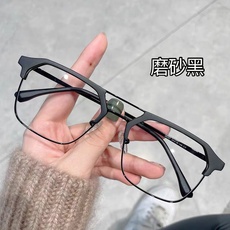 新款时尚方形双梁大框半框镜框男复古镜架女平光镜可配近视有度数