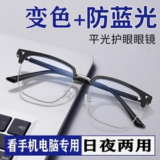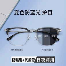 自动感光变色半框眼镜女近视度数可配防蓝光护眼茶色素颜神器镜架